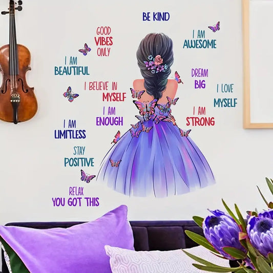 1pc,Butterfly Girl Wall Decals, Colorful Butterflies With Motivational Lettering