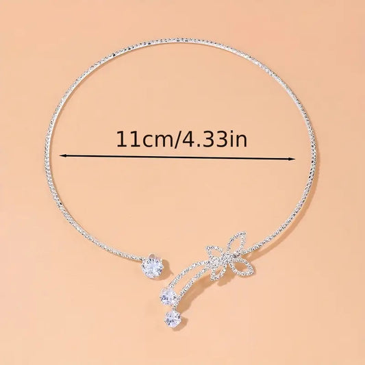 Elegant Glitter Purple Silver Heart Butterfly Pendant Necklace
