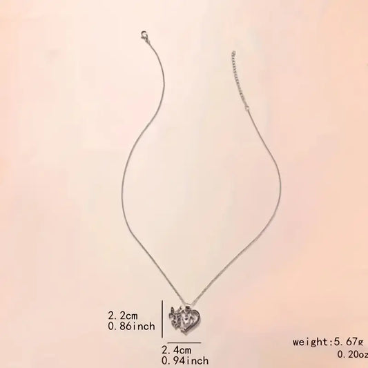 Elegant Glitter Purple Silver Heart Butterfly Pendant Necklace